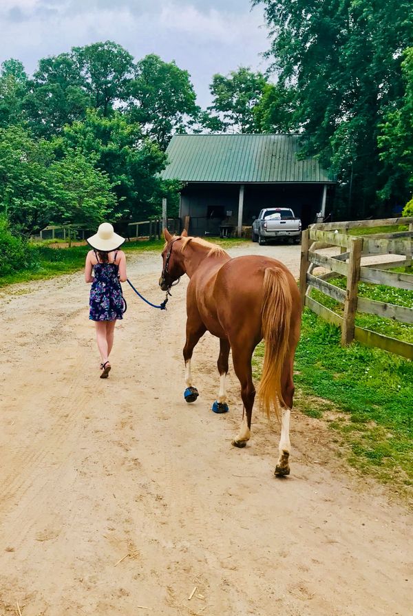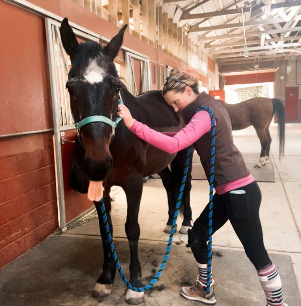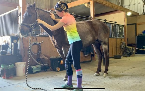 Kat Page Dortenzo is a lifelong horsewoman and an IAAMB accredited equine sports massage therapist offering whole horse wellness and performance through bodywork and biomechanically correct training. Kat started riding at the tender age of 5 and she knew from the get-go that she wanted to do something with horses when she finally grew up. Growing up just outside of Metamora, Michigan, Kat was fortunate enough to have access to quality instruction from a young age and she spent her childhood swinging a leg over anything she could. Kat’s beloved yellow horse, Ollie, came into her life when she was 12 years old and the rest was history after that. Ollie carried Kat in the hunter and jumper rings, after a pack of hounds in the hunt field, and down countless miles of trails. Starting out as a weekend barn worker throughout high school and eventually working her way up through the ranks, Kat’s journey carried her to the Gainesville/Ocala area and then on to Tryon, North Carolina, where weekend barn chores morphed into professional grooming and barn management up through the FEI level. Never one to say no to an opportunity working with horses or to learn something new, she has experience working with all types of horses with her true passion being working with young horses, especially OTTBS, and novice riders, regardless of discipline. In 2015, Ollie had an injury that left him on stall rest for the summer and Kat found herself rehabbing a very bored, very sore horse leading to the completion her first equine massage course. After seeing the improvement in both Ollie’s physical and mental well-being with the incorporation of massage into his rehab process, Kat began utilizing it on her client’s horses.