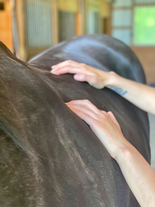 Now based outside of Chattahoochee Hills, Georgia, and with over 7 years of bodyworking experience and 400+ hours of bodyworking education, Kat combines her vast experience with horses with her formal educational background in exercise science and biology to provide a unique approach and perspective for both horse owners and professionals looking to keep their equine partner happy, comfortable, and performing their best. Her clients range everywhere from recreational trail horses to FEI competition horses. She enjoys working with all levels of horse and rider and truly believes that every horse has the potential to be great. A firm believer in continuing education, Kat makes a point to further her education constantly whether it’s in the form of lessons, clinics, or taking another certification class to benefit her business and clients. Currently working on her personal trainer certification, Kat is looking forward to offering her services to her human clients starting in 2023. When she’s not in the barn, you can more than likely find Kat working on her other business, Yellow Horse Creative, traveling with her husband Mike, or running around in the woods with their two hound dogs: Bilbo and Walker. The two recently bought property and are beginning to develop it into the facility Kat has spent her life dreaming about.